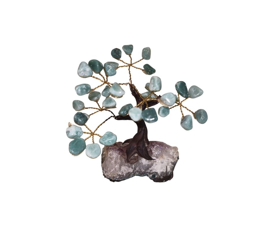 Ce bonsaï orné de feuilles en aventurine verte naturelle diffuse une vibration douce et équilibrante. L’aventurine est connue en lithothérapie comme la pierre de la chance, mais aussi comme un soutien pour apaiser le stress, ouvrir le cœur et favoriser les nouveaux départs. En forme de bonsaï, elle symbolise la croissance, la prospérité et l’harmonie dans l’environnement.