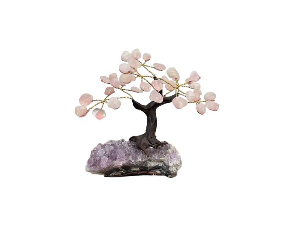 Ce magnifique bonsaï énergétique est composé de feuilles en quartz rose naturel, une pierre précieuse en lithothérapie pour ses vertus liées à l’amour inconditionnel, à la guérison du cœur et à la douceur relationnelle. Il allie la symbolique zen du bonsaï (harmonie, patience, stabilité) à l’énergie bienveillante du quartz rose.