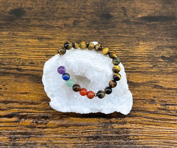 Ce bracelet spirituel associe la puissance protectrice de l’œil de tigre à l’énergie équilibrante des 7 chakras. Chaque perle colorée représente un chakra, tandis que les perles en œil de tigre apportent courage, force et protection contre les énergies négatives.