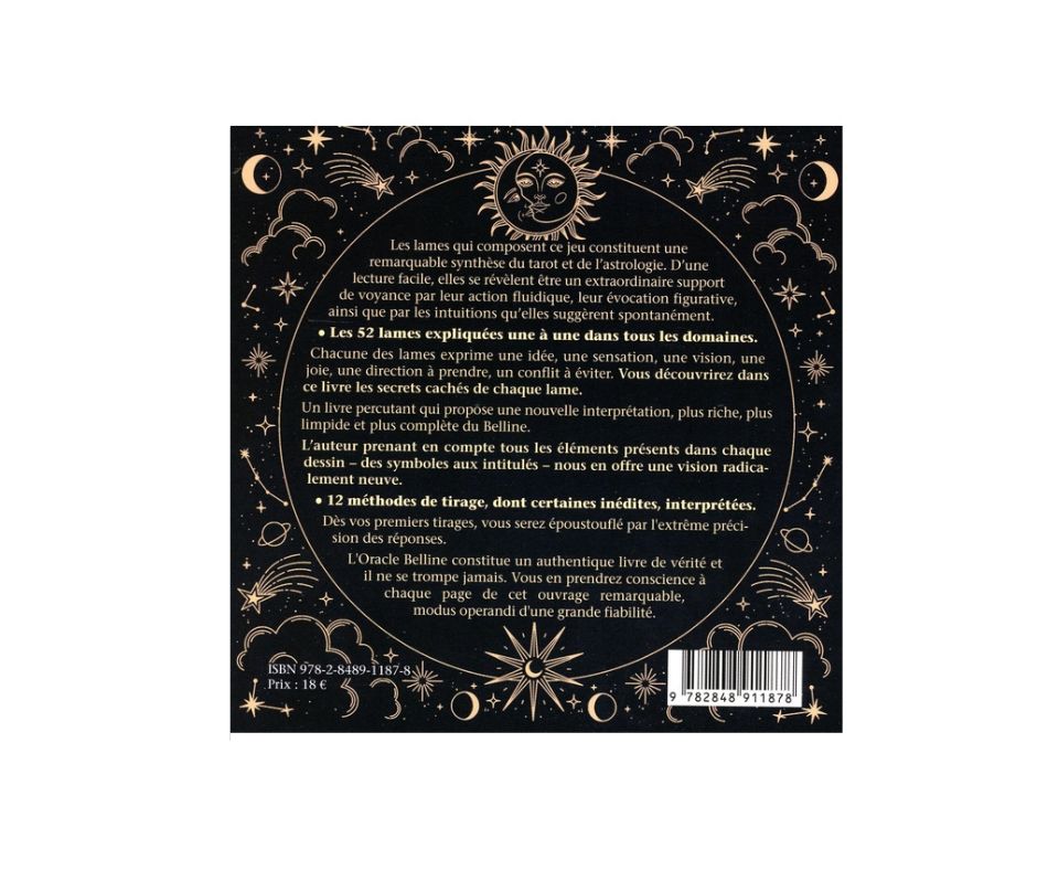 Livre explicatif, L’Oracle Belline est un outil incontournable pour toute personne souhaitant recevoir des guidances fiables, approfondir son intuition et pratiquer la cartomancie traditionnelle.