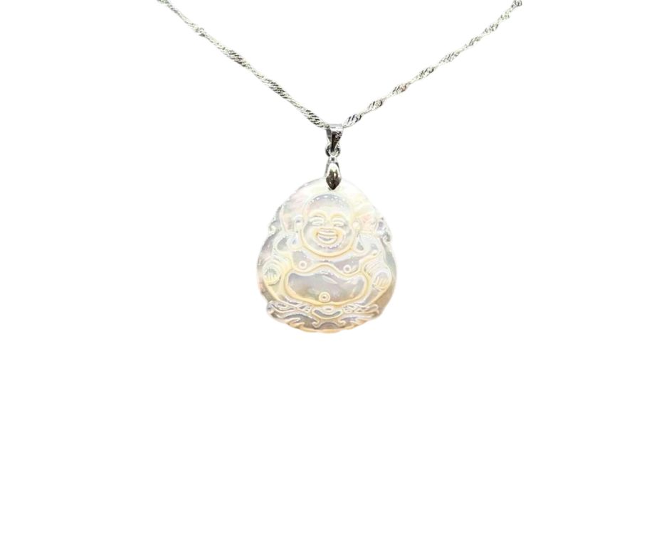 Ce pendentif représente le Bouddha Rieur, symbole ancestral de bonheur, de protection, et d’abondance. Son sourire est un rappel joyeux de la légèreté de l’être et de la richesse intérieure. Sculpté dans de la nacre naturelle, ce bijou reflète la lumière avec douceur, apportant paix et harmonie.