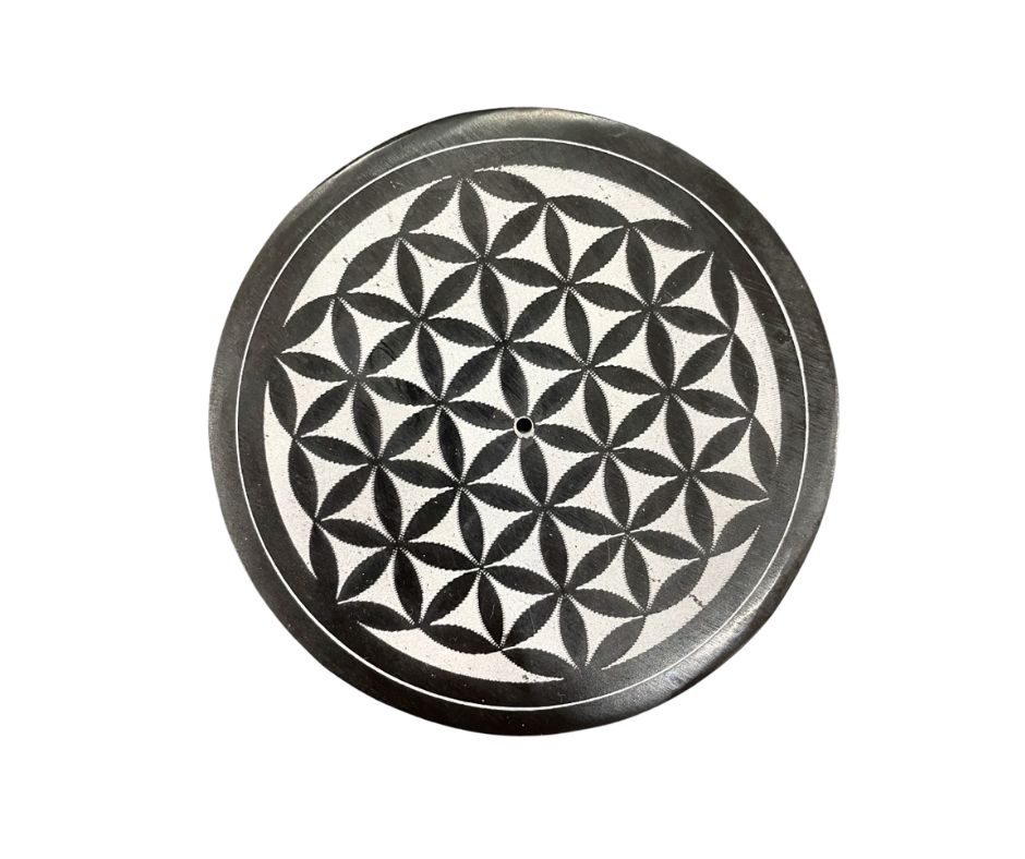 Apportez harmonie et vitalité à vos pierres naturelles grâce à cette plaque de rechargement en saponite, magnifiquement gravée du motif sacré de la Fleur de Vie. Symbole universel de la création, cette géométrie sacrée élève le taux vibratoire et favorise l’équilibre énergétique.