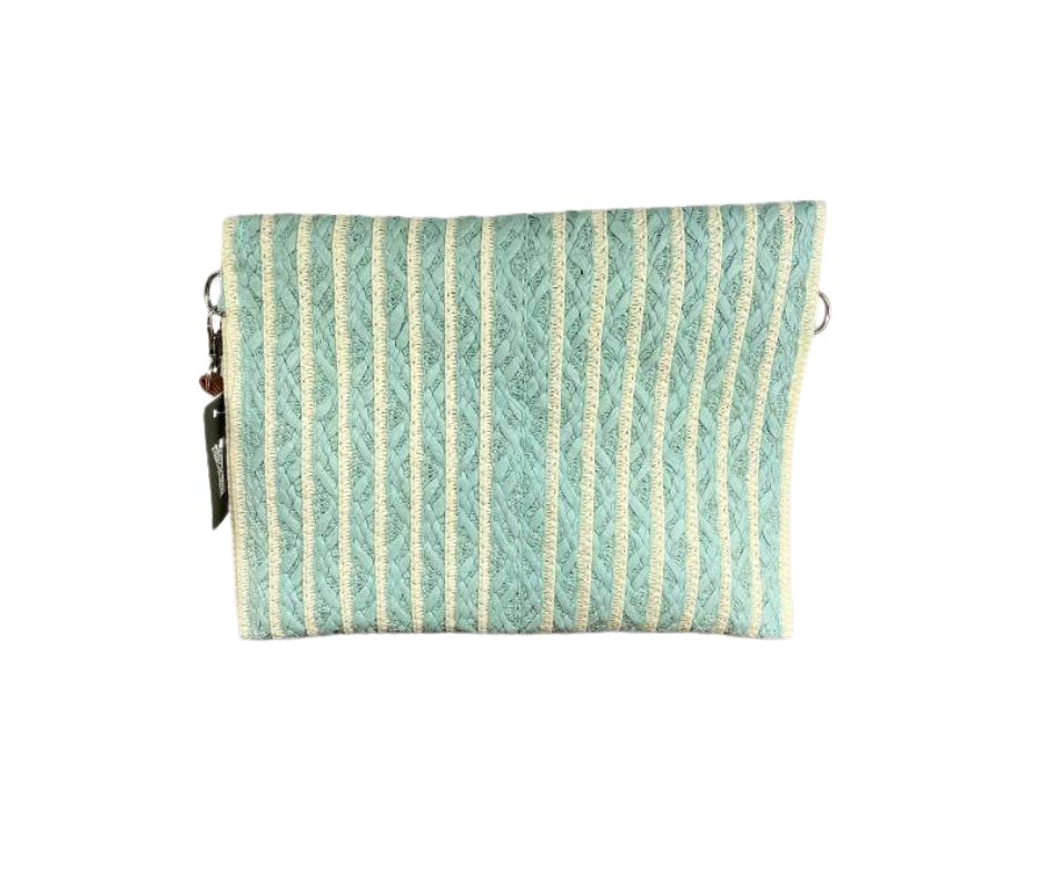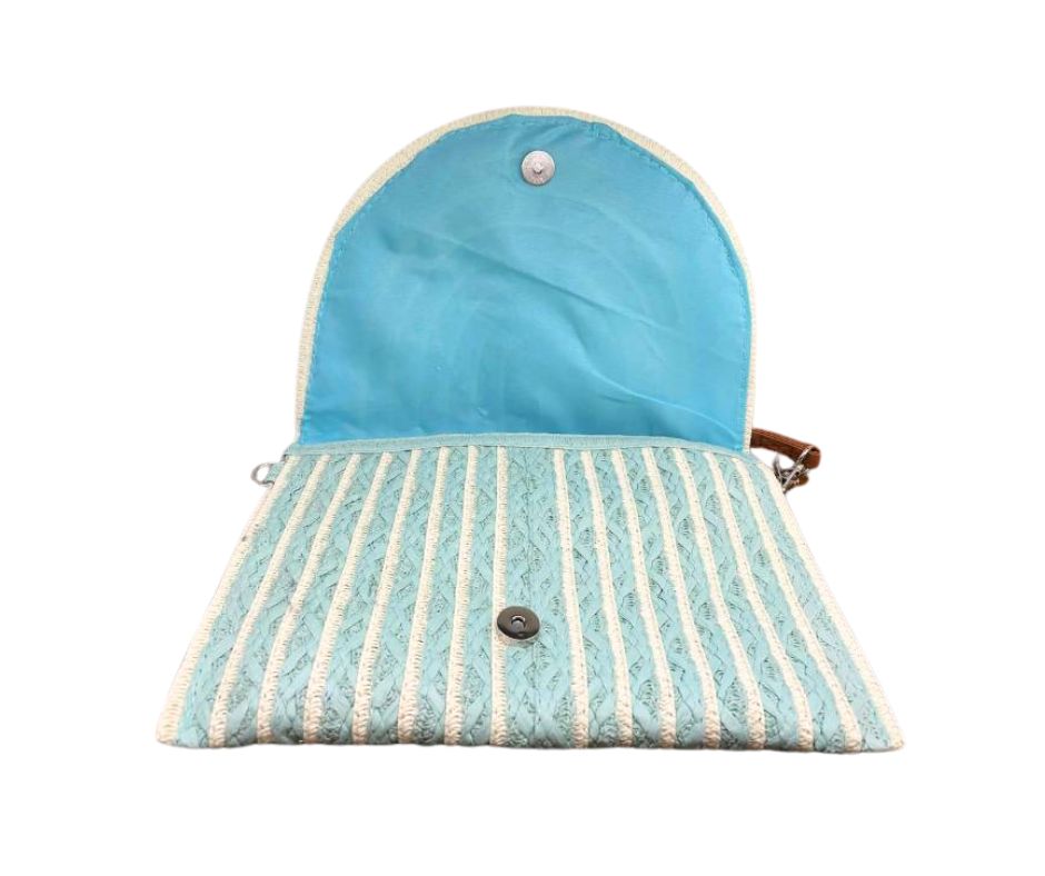 Pochette en Paille bleu et blanc. C’est l’accessoire à posséder !